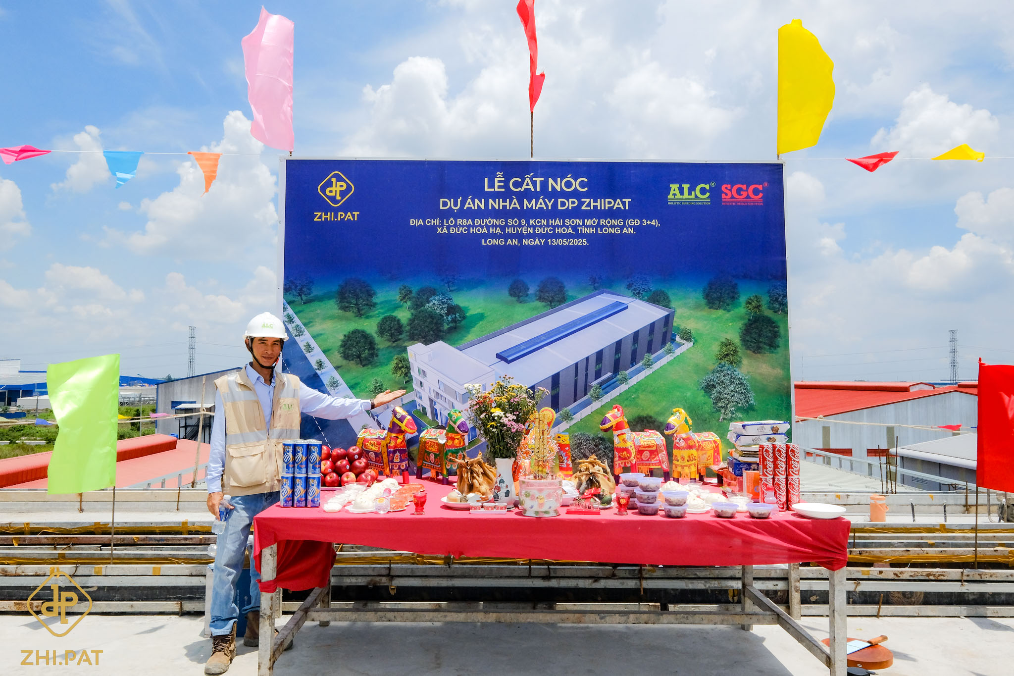 Ngày 13 tháng 5 năm 2025, tại Khu Công Nghiệp Hải Sơn, Long An, Công ty TNHH DP ZHI.PAT – thành viên của Đài Phong Group – đã long trọng tổ chức Lễ Cất Nóc cho nhà máy mới. Sự kiện này không chỉ đánh dấu một cột mốc quan trọng trong tiến trình xây dựng mà còn thể hiện rõ nét tinh thần quyết liệt trong việc thúc đẩy tiến độ và cam kết không ngừng với chất lượng thi công – những giá trị cốt lõi mà DP ZHI.PAT luôn theo đuổi.